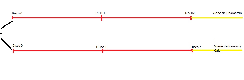 Supongamos la situación inicial del gráfico: (Disco 0 es la estación de "Pitis")