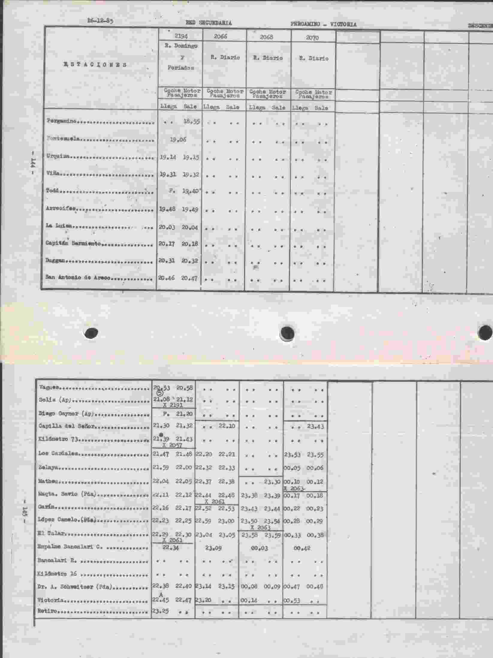 El que procedía de Venado Tuerto salía de esta estación a las 3.20 de la mañana diariamente y el que terminaba en Pergamino corría solamente los domingos y días feriados.