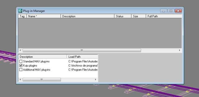 El archivo kuju.simmaterial.dlt está en su carpeta, y el Kujufacetags.ini está en C:\archivos de programa\autodesk\3ds max 9\plugcfg. Parece ser que lo busca en otro sitio.