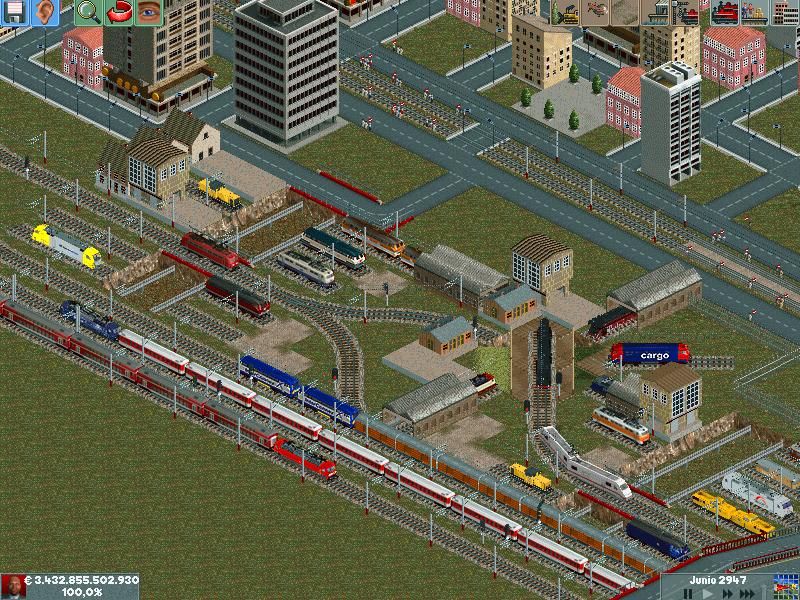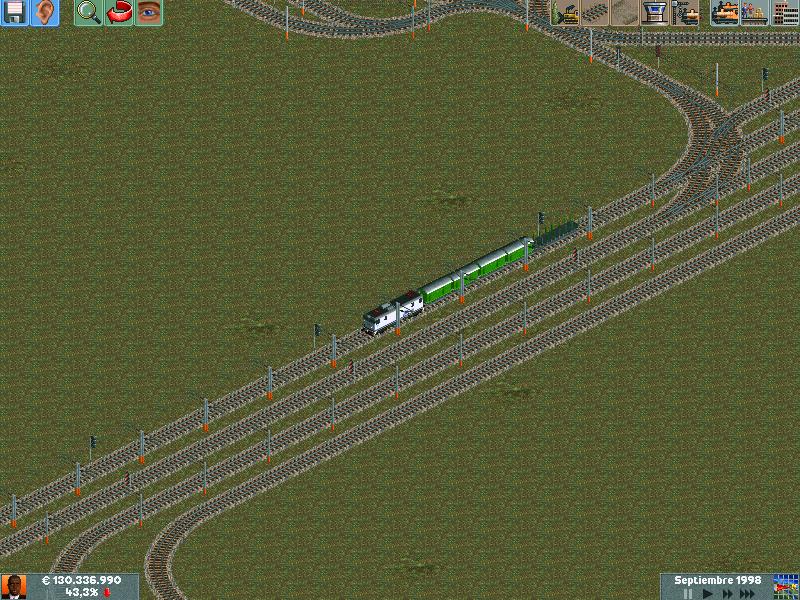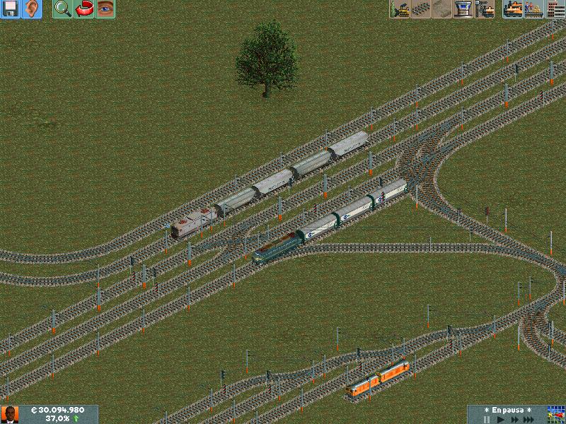 En mis redes procuro separar los trenes por velocidad, ya sea pasajeros o mercancías. Después de muuuuchas horas he conseguido dominar la IA del juego y rara es la vez que algún elemento se me despista (generalmente en obras...)--truco: hacer todo lo que se pueda en ro-ro!. Dejo unas poquitas fotos