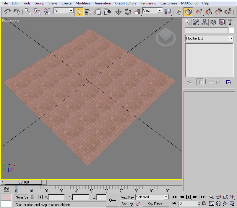 La textura se ha adaptado a toda la superficie del polígono y, claro, esto no es lo que queremos puesto que las losetas han adquirido un tamaño descomunal. Vayamos a modificar el mapeo de este material.