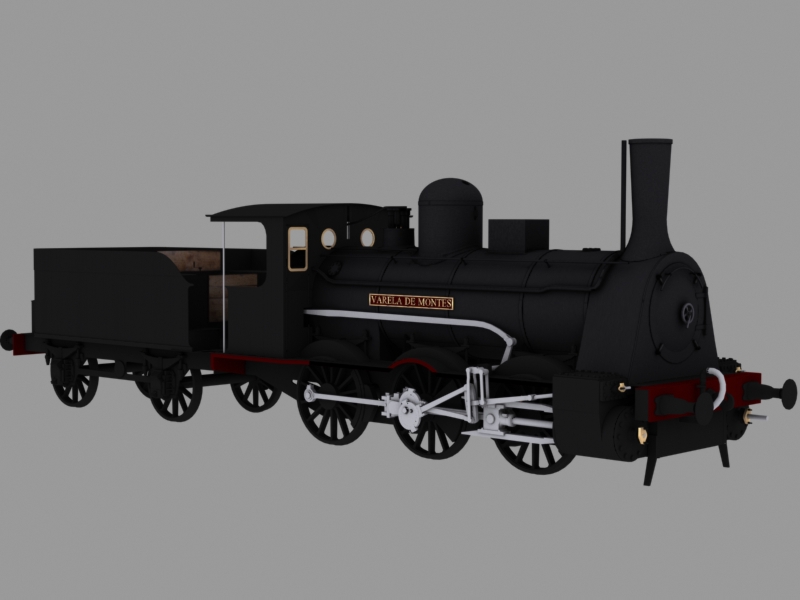 Los modelos, tanto de locomotora como de tender, ya están en cualquier caso exportados a RW y funcionan razonablemente (incluyendo la animación de esa complicada distribución por excentricas Allan), pero como todavía están con hojas de textura meramente provisionales y a falta de bastantes detalles, muestro un render de 3ds, que siempre luce más en estos casos.