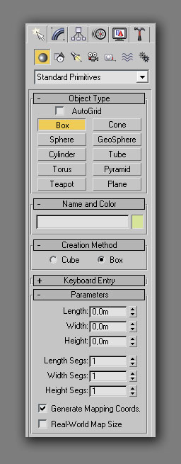 Si una vez ejecutado uno de estos procedimientos en el modelo no se aprecia ningún cambio, será seguramente porque el botón "Show Map in Viewport" no está pulsado. Pues lo pulsamos y ya nos debe aparecer la casilla correctamente texturada, por lo que podemos cerrar la ventana del "Material Editor" y apreciar la casilla en el editor 3D: