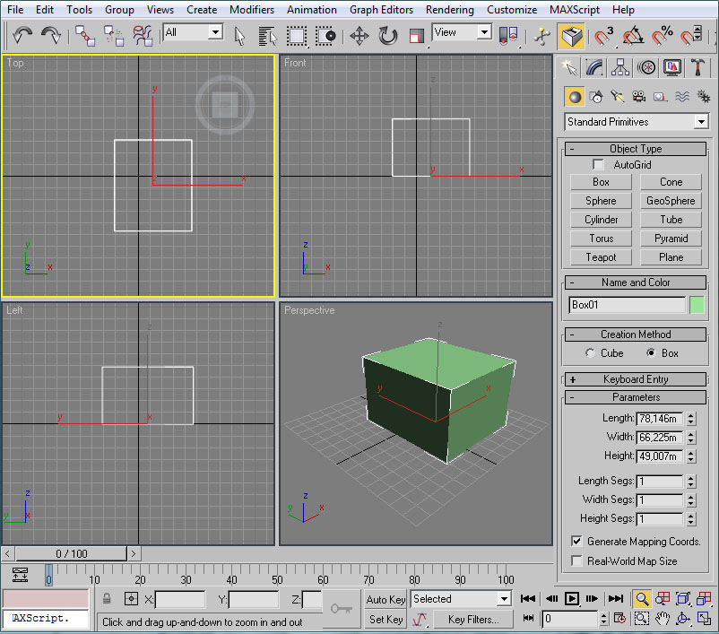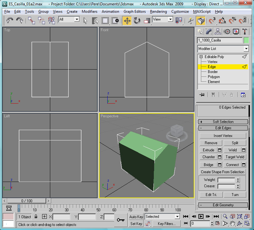 A destacar también que si hacemos clic con el botón izquierdo del ratón sobre el nombre del viewport, este pasa a ser el viewport activo sin perderse la selección del objeto actual. Esto es importante para poder editar un objeto de forma continuada en todos los viewports, como veremos más adelante.