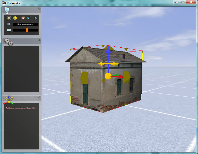 De vuelta al blueprint, podríamos proceder a "Exportar" el modelo en este momento, pero se nos pasa por la cabeza que una casilla ferroviaria estará habitualmente situada junto a las vías, y... si un tren descarrilase y se abalanzase sobre nuestra casilla ¿que ocurriría? Pues que la locomotora, coches y vagones "atravesarían" nuestro modelo virtual, entrando por una fachada y saliendo por la opuesta, como si tal cosa. Como no podemos estar de acuerdo con este proceder, vamos a hacer "sólido" nuestro modelo.