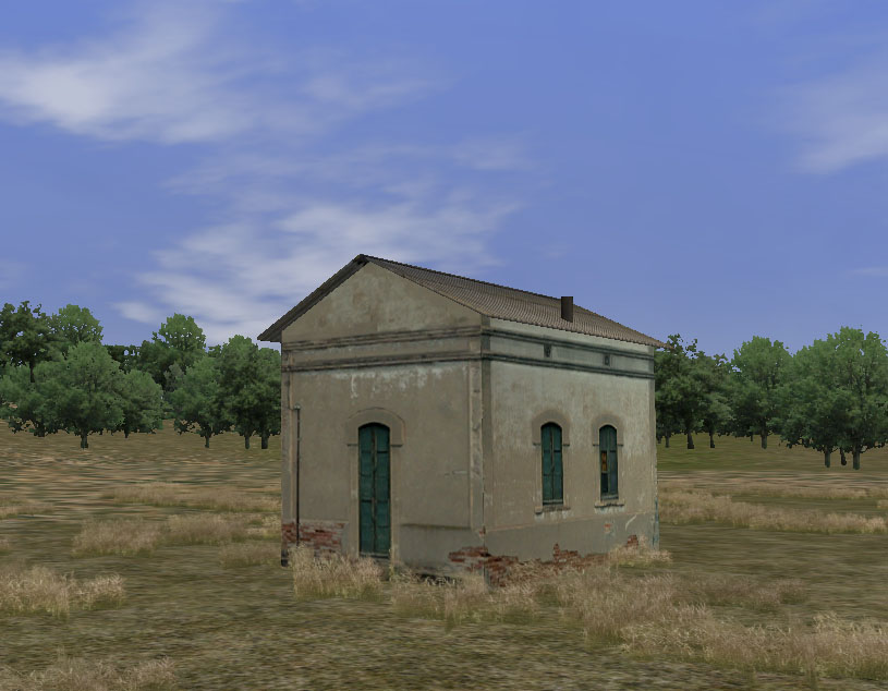 Tampoco deberemos extasiarnos durante mucho tiempo en esta visión, pues ni lo hemos hecho tan bien, ni hemos terminado con el trabajo en absoluto. De momento, y teniendo presente que el primer objetivo será visualizar el trabajo realizado en el simulador, procederemos a exportar el modelo (menú "File" comando "Export...") al formato requerido por el simulador: "Kuju Intermediate Geometry (*.IGS)", dándole como nombre el que deseemos, por ejemplo, "ES_Casilla_01.IGS". Debemos verificar que el archivo IGS se vaya a crear en el directorio de RailWorks donde hemos estado trabajando dentro de Source, tal como comentamos en el capítulo 5 "Guardando el trabajo - Extructura de directorios para RW".