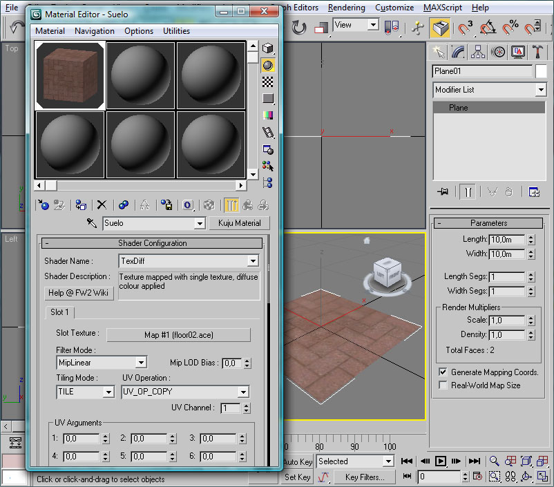Crearemos un material con dicha textura y lo asignaremos al polígono antes creado: