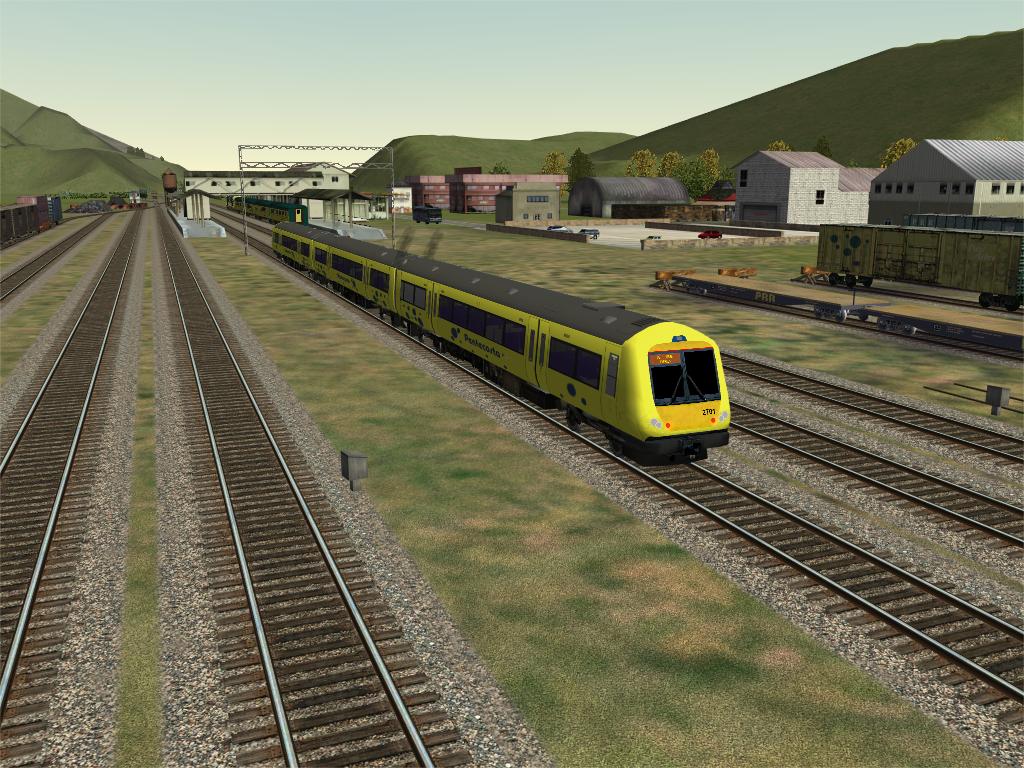 Una vez más esta ruta me ha dejado boquiabierto :shock: Por llamarle ruta, porque por su extensión y ramaje es realmente un sistema ferroviario completo. Esto son los alrededores de un sitio llamado 'Guagnew', con un 'Class 170' repintado en librea de la compañia principal de 'Pentecosta':