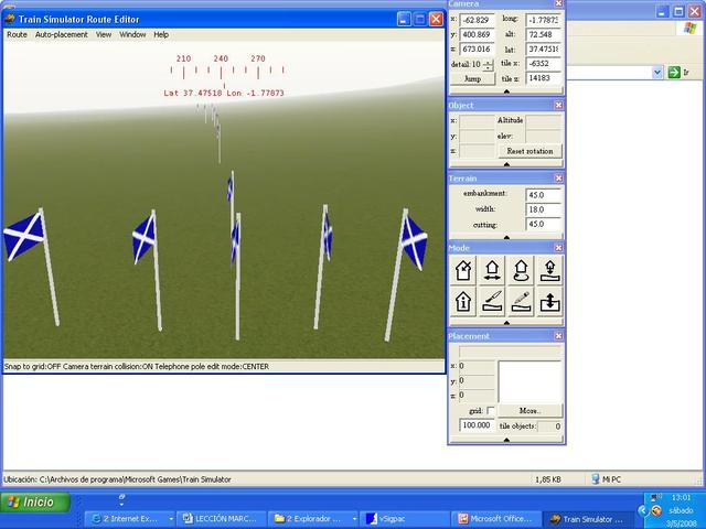 Podemos jugar con Acercar y Alejar y añadir los marcadores que queramos: puentes y caminos, sobre todo. O dejarlo para otro archivo ALMENDAG*.mkr que usemos. La única observación es cuando necesitemos vía de puente o vía de túnel que tendremos que sustituir la vía estándar por la propia (bridge o tunnel), sobre todo en los túneles que no tendremos muchas variaciones de radio de curva.