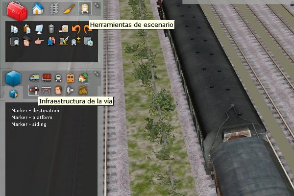 Estos marcadores se encuentran, sin salir del modo de edición de escenario, en el apartado Infraestructura de la vía y, al igual que los propios de la ruta, existen tres tipos: