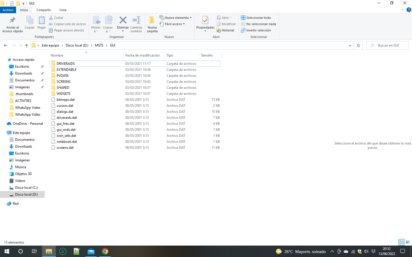 Es donde se guardan los elementos de la interfaz de usuario de MSTS, como las imágenes de la pantalla o los menús.