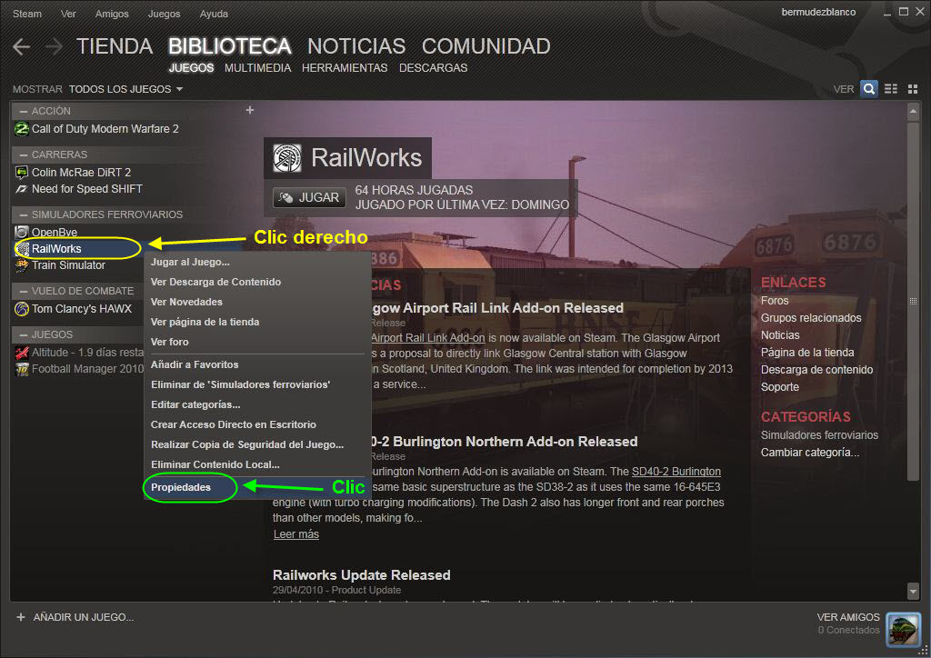 Luego haces clic derecho en RailWorks, y en el menú emergente, clic en propiedades...