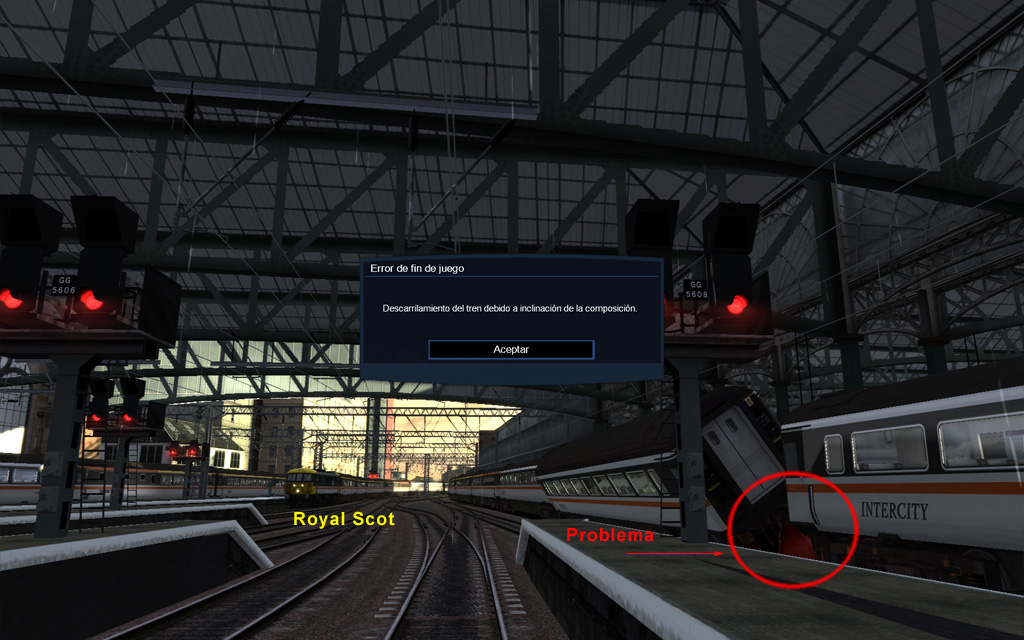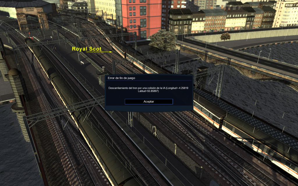 Royal Scot: escenario que debe revisarse, ya que no se puede terminar. Error al llegar a Glasgow (estación final)...