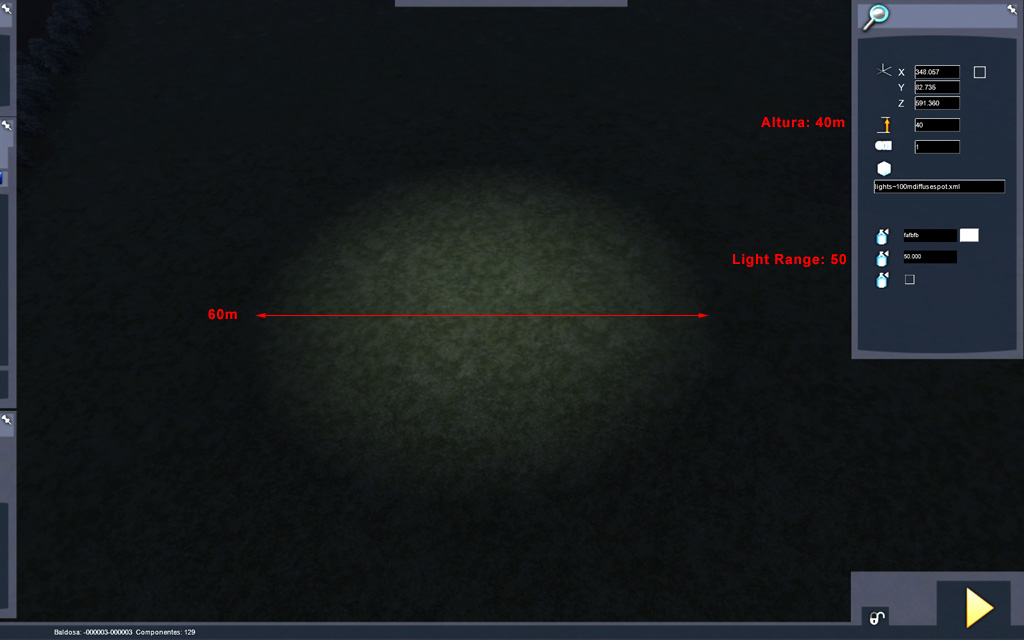 Vamos a conocer mejor los parámetros de ajuste de Altura (terreno) y Light range (intensidad) de las luces Spot: