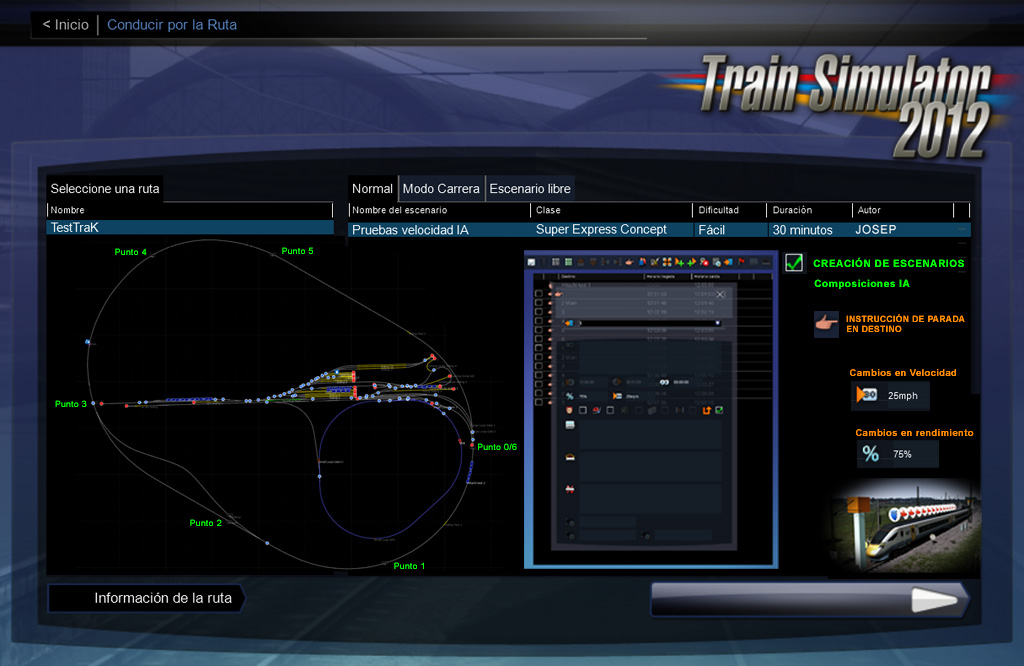 Son muy interesantes esos cambios que ha dado RW3 en relación al RW2 en lo que se refiere a creación de escenarios, se agradece el tema de los IA que puedan enganchar y desenganchar material. Yo hace ya algún tiempo hice algunos escenarios en el primitivo RS y también en RW, sería muy interesante hacer o volver a editar un tutorial para aquellos que quieran hacer escenarios, “digo lo de editar”, porque ya hay uno que se encuentra en la TrenSimpedia aquí: http://www.trensim.com/trensimpedia/ind ... escenarios. Sería solamente ampliarlo en lo nuevo que nos ha traído TS2012.