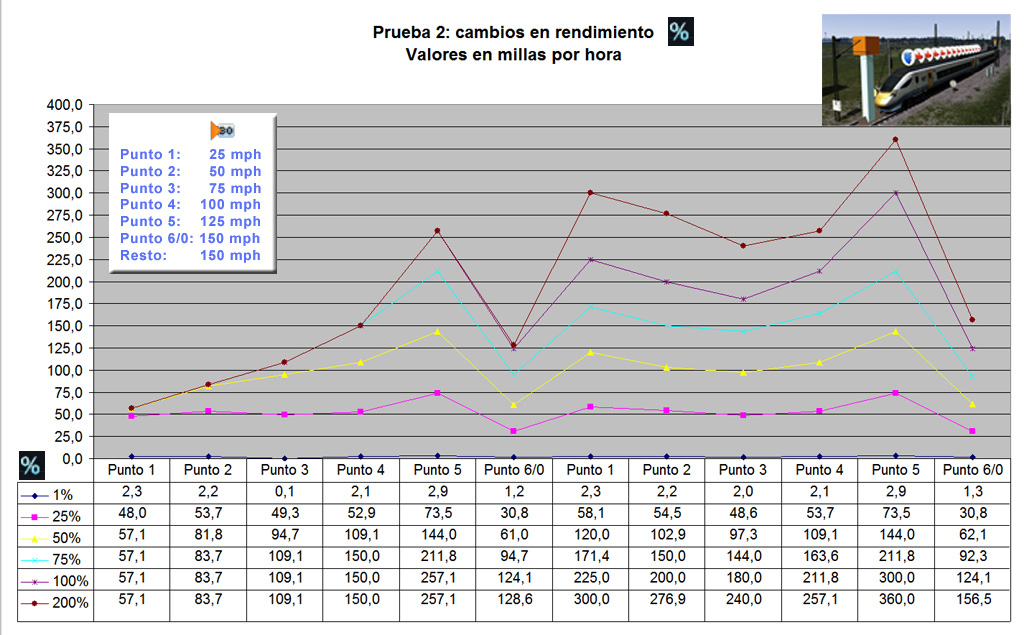 Prueba 2: variación de rendimiento