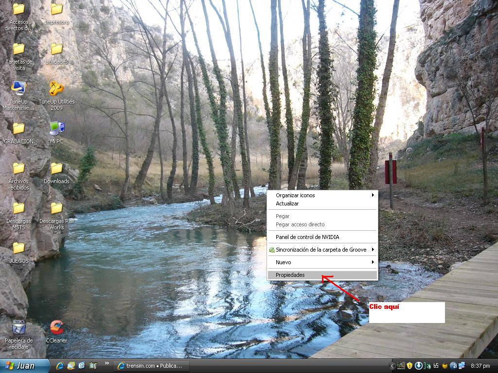 Clic derecho sobre el escritorio, y te aparecerá la siguiente ventana. Clicas en propiedades.