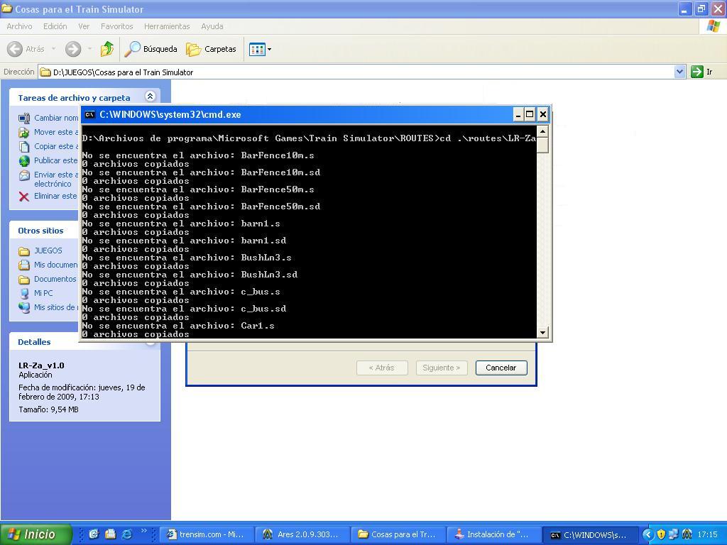 Por ejemplo, fijate como te quedo instalada la ruta, a que me refiero? entra a la carpeta routes y verifica si la ruta en cuestion no este a su vez dentro de otra carpeta, lo que estaria impidiendo que el installme.bat pueda conseguir los archivos necesarios. A mi me a pasado algunas veces que la ruta "X" en vez de quedar guardada directamente en ROUTES, quede dentro otra sub-carpeta; por ej: routes, ffcc central,etc.