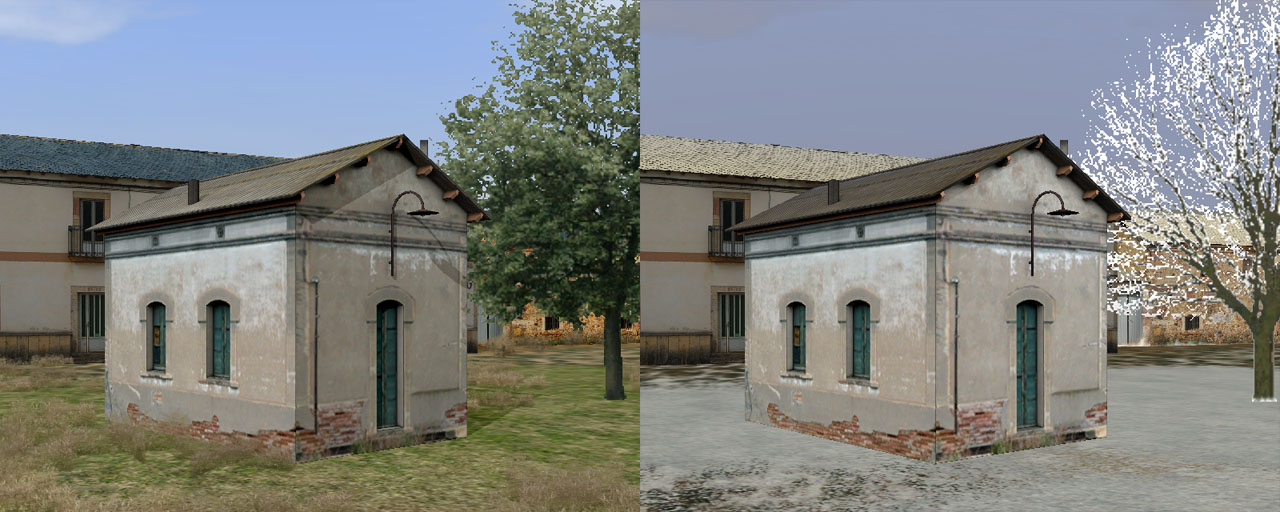 Todo lo comentado para las texturas de nieve es válido para otras texturas estacionales, como primavera u otoño, y tanto es de aplicación a edificios como a cualquier clase de creación en el simulador. Por tanto, nada nos impide realizar un vagón que en invierno se vea ligeramente cubierto de nieve, si es el caso ;)