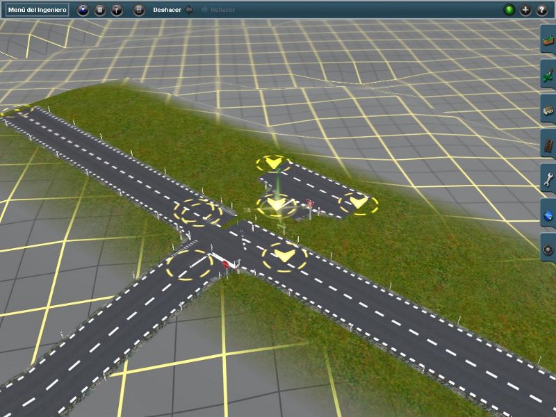 La vía es como si fuera independiente del paso a nivel, pues debería estar enredezada y no lo está en ninguno de los dos pasos a nivel, y cuando borro el paso a nivel se queda la vía y no me deja moverla ni borrarla. También, en la 2ª captura se puede ver que la carretera parece que pase por encima del paso a nivel, el "pfosten" (los indicadores reflectivos de la carretera) están en medio de la vía...
