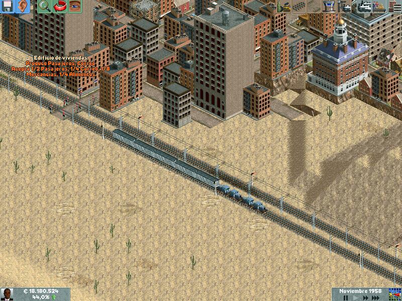 Os explico, me he creado un mapa totalmente llano, con muchas industrias. Para ver hasta donde podría llegar y a cuantos trenes podría hacer jaja. Lo empece en el año 1995 justo, con ciudades pequeñas apenas de 500 habitantes. Ahorra llevan algunas mas de 60.000 habitantes, y lógicamente las estoy encerrando para que no crezcan porque madre mía. Llevo unos 130 trenes, 14 aviones y unos 20 tranvías.